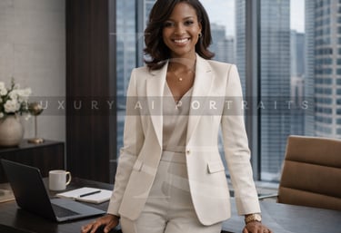 At Luxury AI Portraits, we craft polished, authentic images that capture your professional essence without the hassle of a photoshoot.